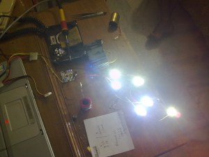 So i had to make the power supply for these LEDs so as to ensure reliable operation.I had a few LM3404 samples i had received from National semiconductor lying around.Its a buck converter based constant current source LED driver.It has an internal MOSFET capable to switch up an amp of current. requires very few external components for operation.Hence is ideal for my project.Also since it’s switching based device it has very high efficiency.So my objective of going green is fulfilled too.The rest of the components used have been salvaged from old electronics-old PC SMPS,old nokia charger,cordless phones,TV video games,FM radio,DVD writer etc.I firmly beleive in recycling!!.