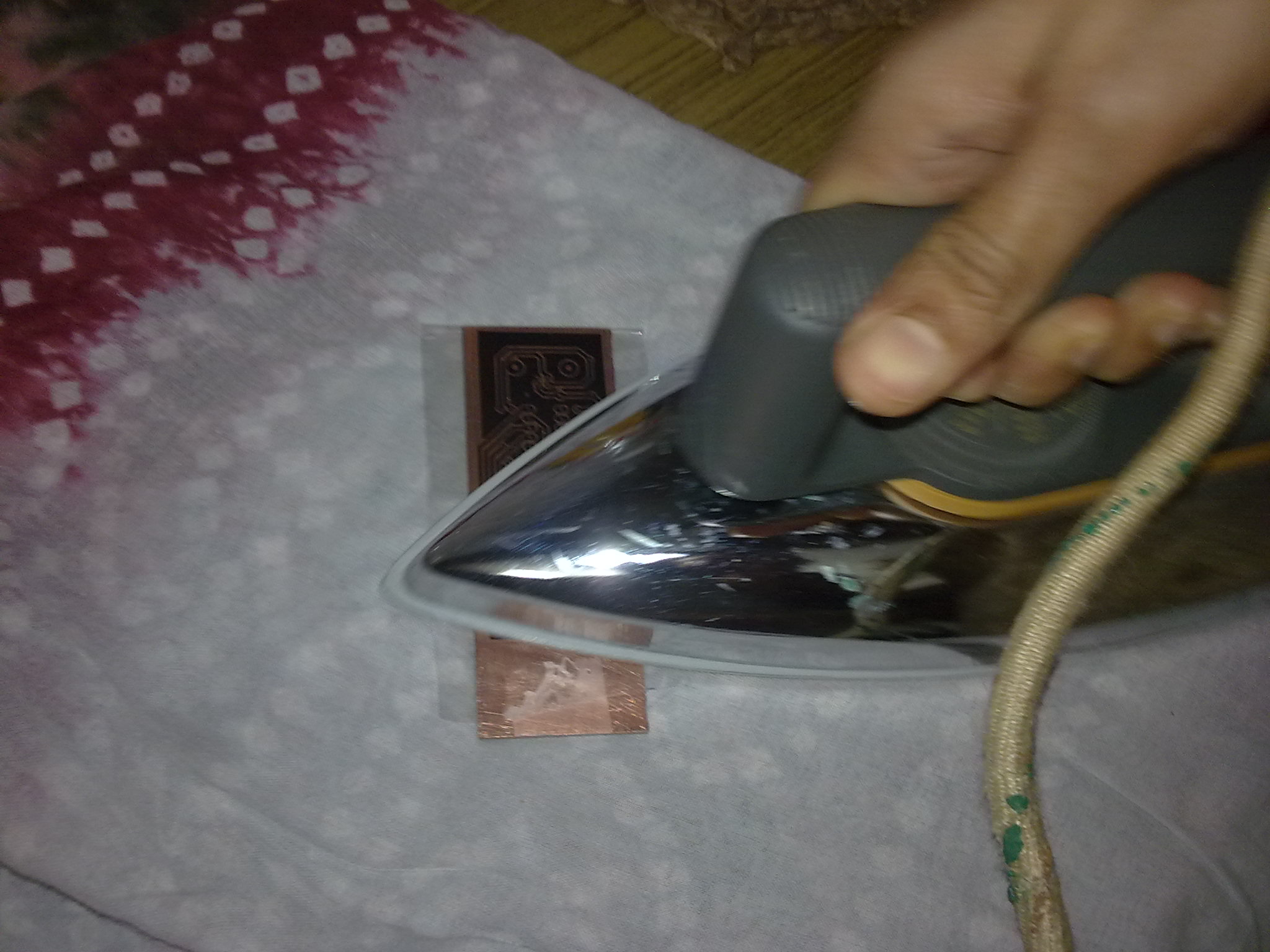 - Once you think the toner is stuck to the copper turn off the iron. let it cool down to the ambient temperature.